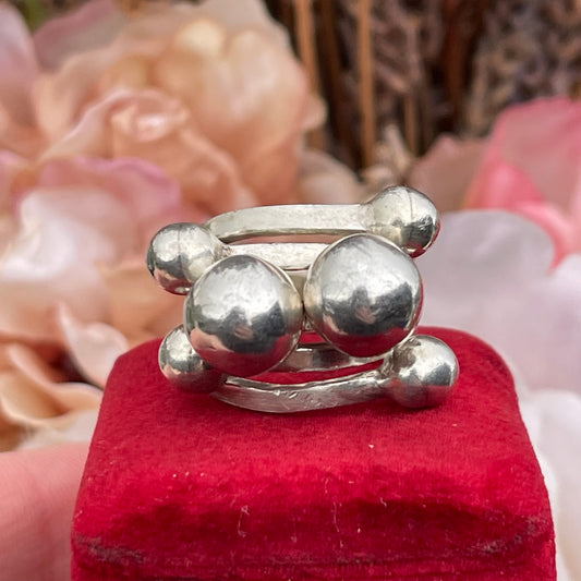 Vintage Sterling Silver Very Heavy modernist ball chunky ring mexican N 13g