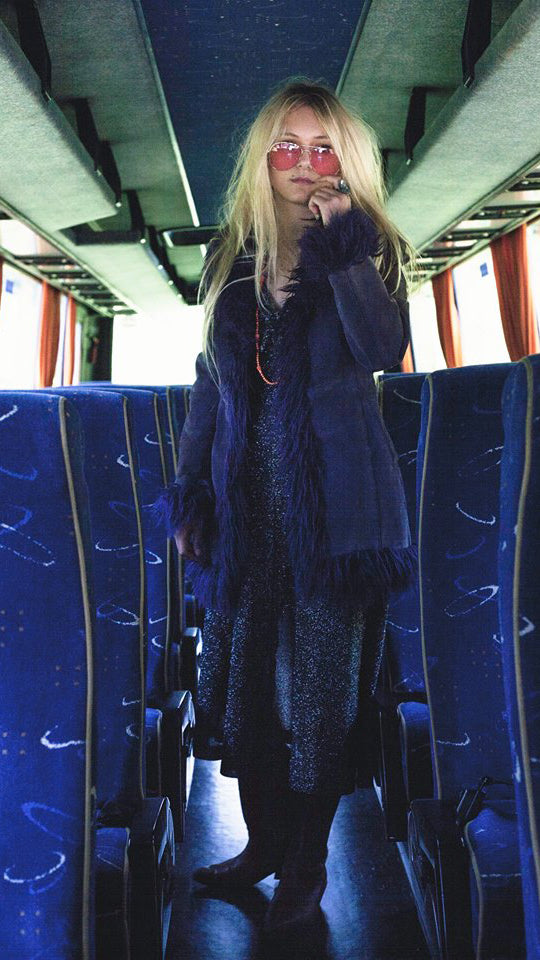 Vintage 90s does 70s purple purple suede and faux mongolian fur jacket in iconic Afghan style