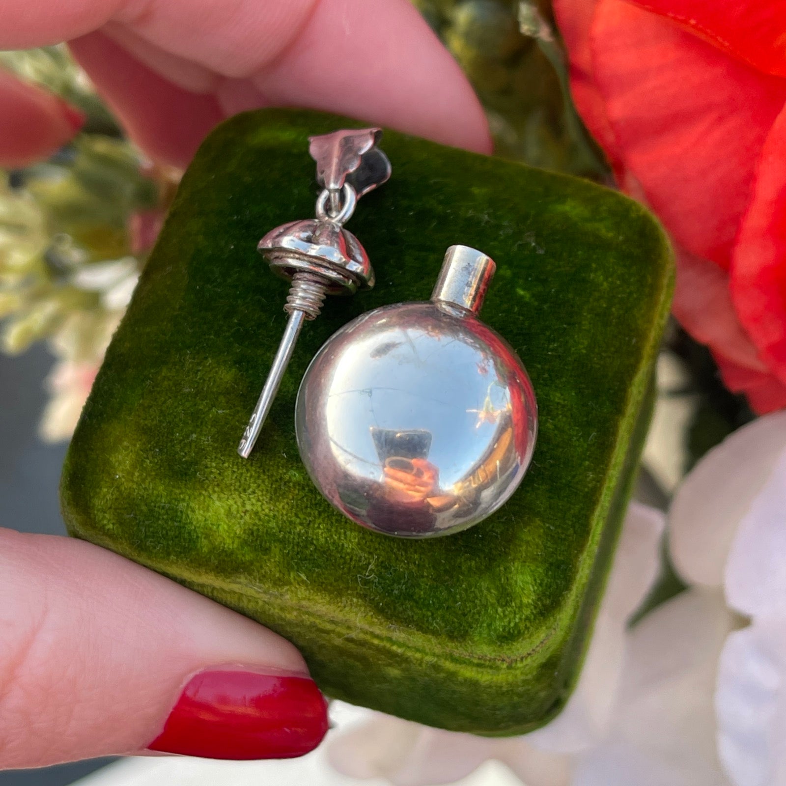 Sterling Silver Perfume Bottle Pendant Vintage Revival Style