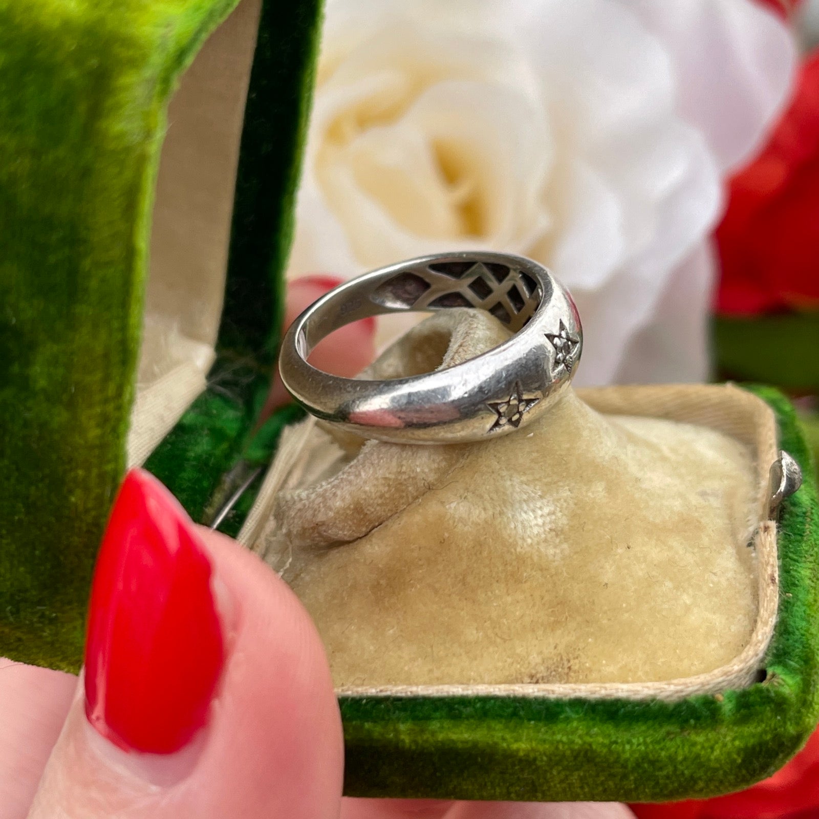 Sterling Silver Diamond Star Bombe Ring Vintage Celestial Style