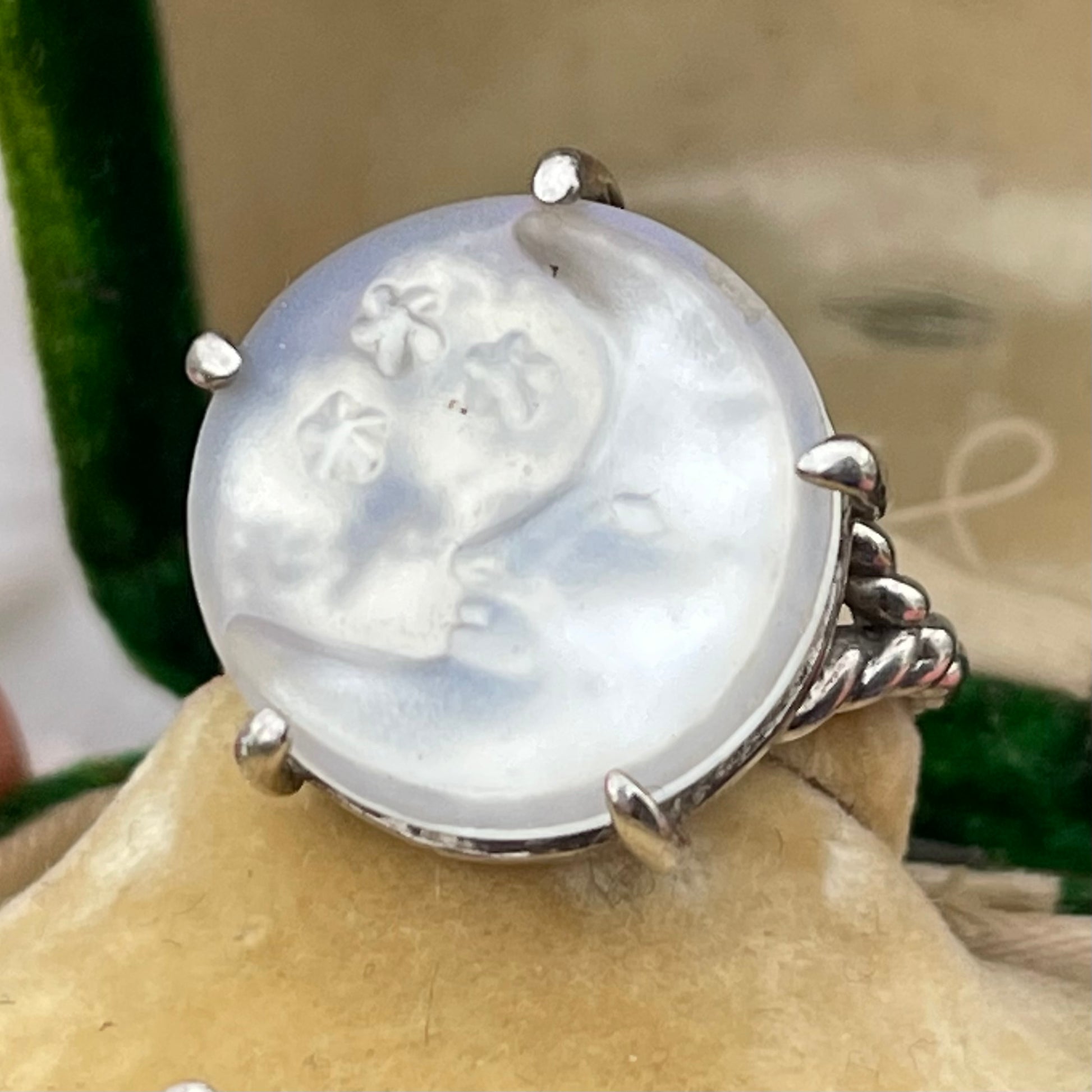 Sterling Silver Iridescent Moon & Stars Ring Vintage Celestial Style Q