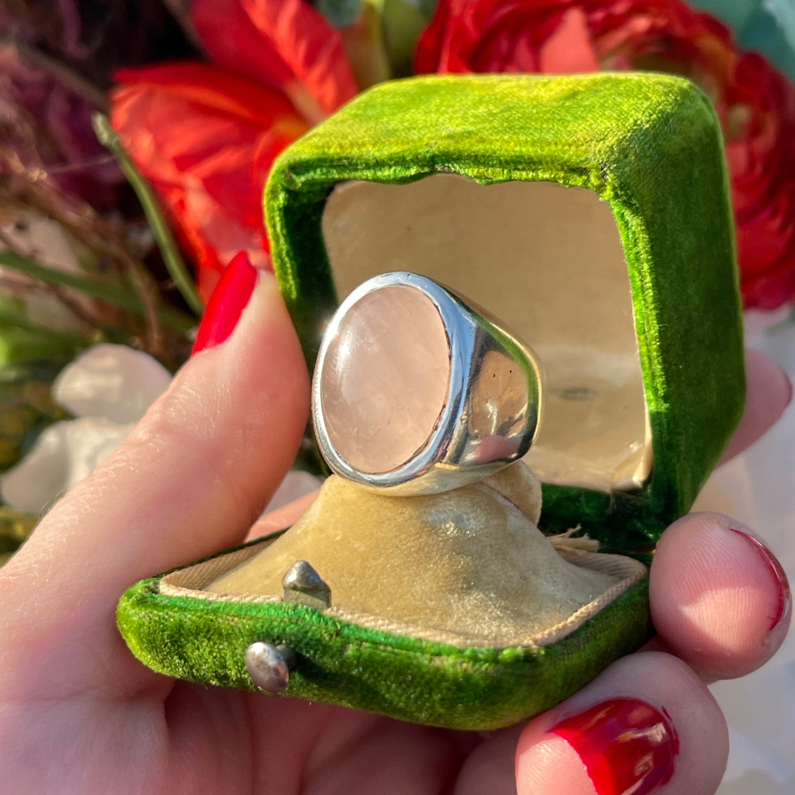 Sterling Silver Rose Quartz Cabochon Ring Statement Chunky Heavy M