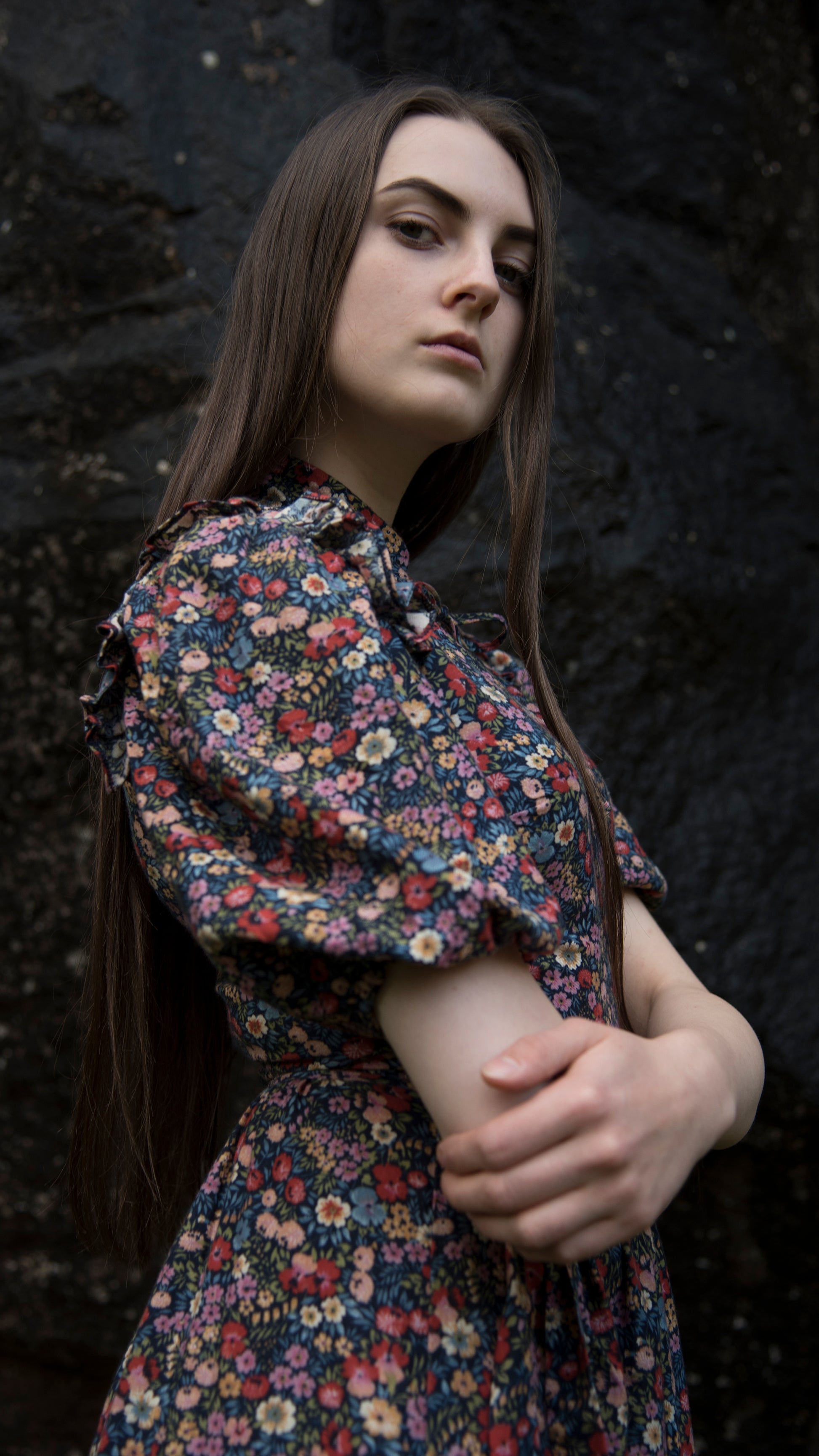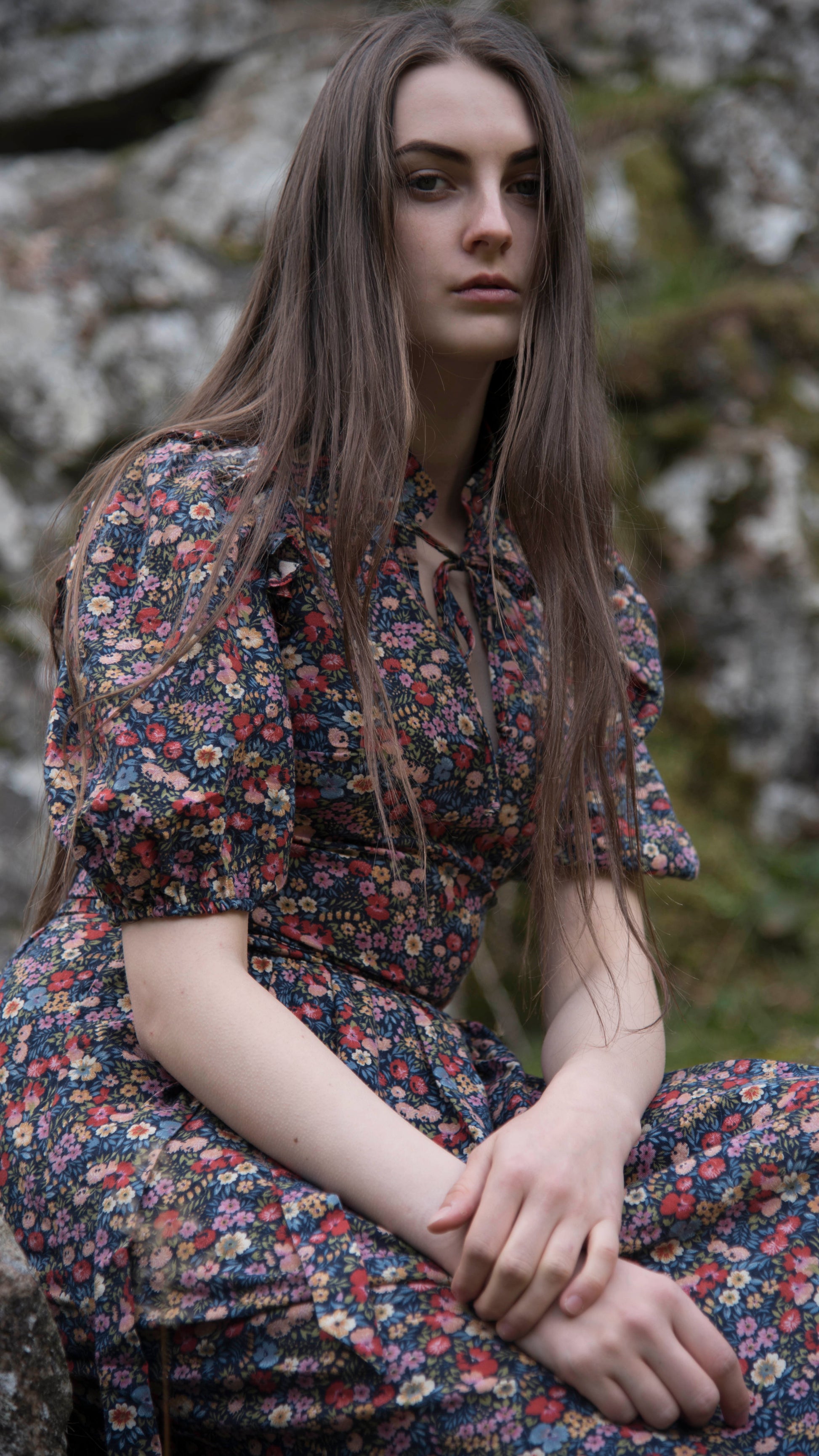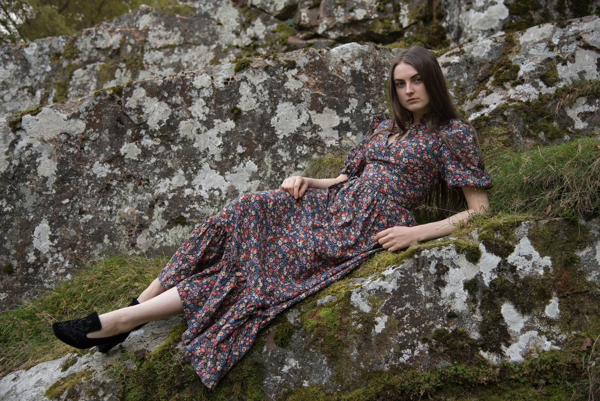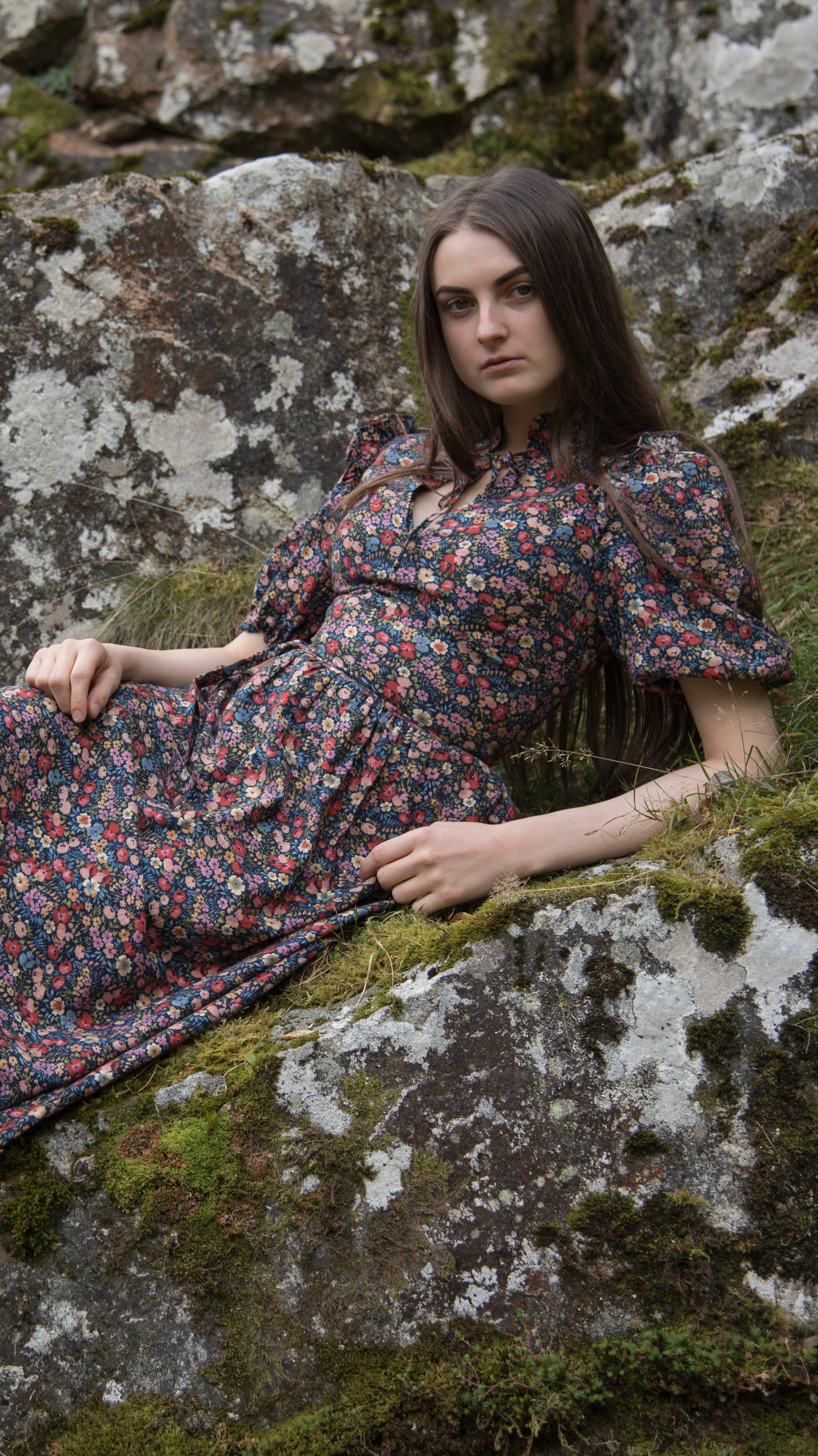 Ditsy floral cotton midi/maxi dress with keyhole neckline and puffball sleeves