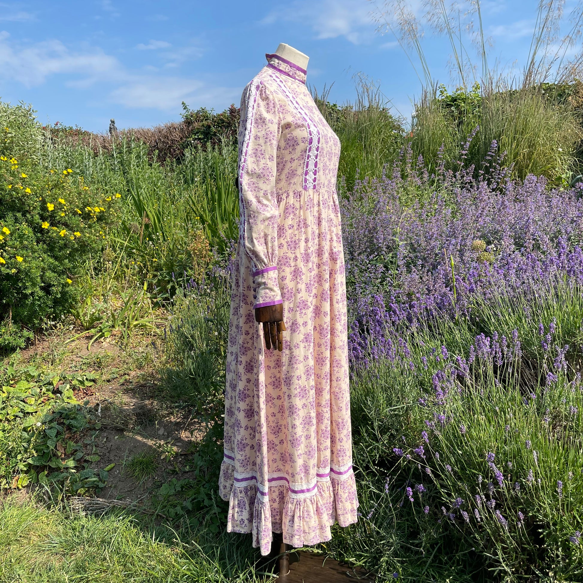Vintage 1970s cotton balloon sleeve maxi dress, Laura Ashley pattern and print fabric, no label