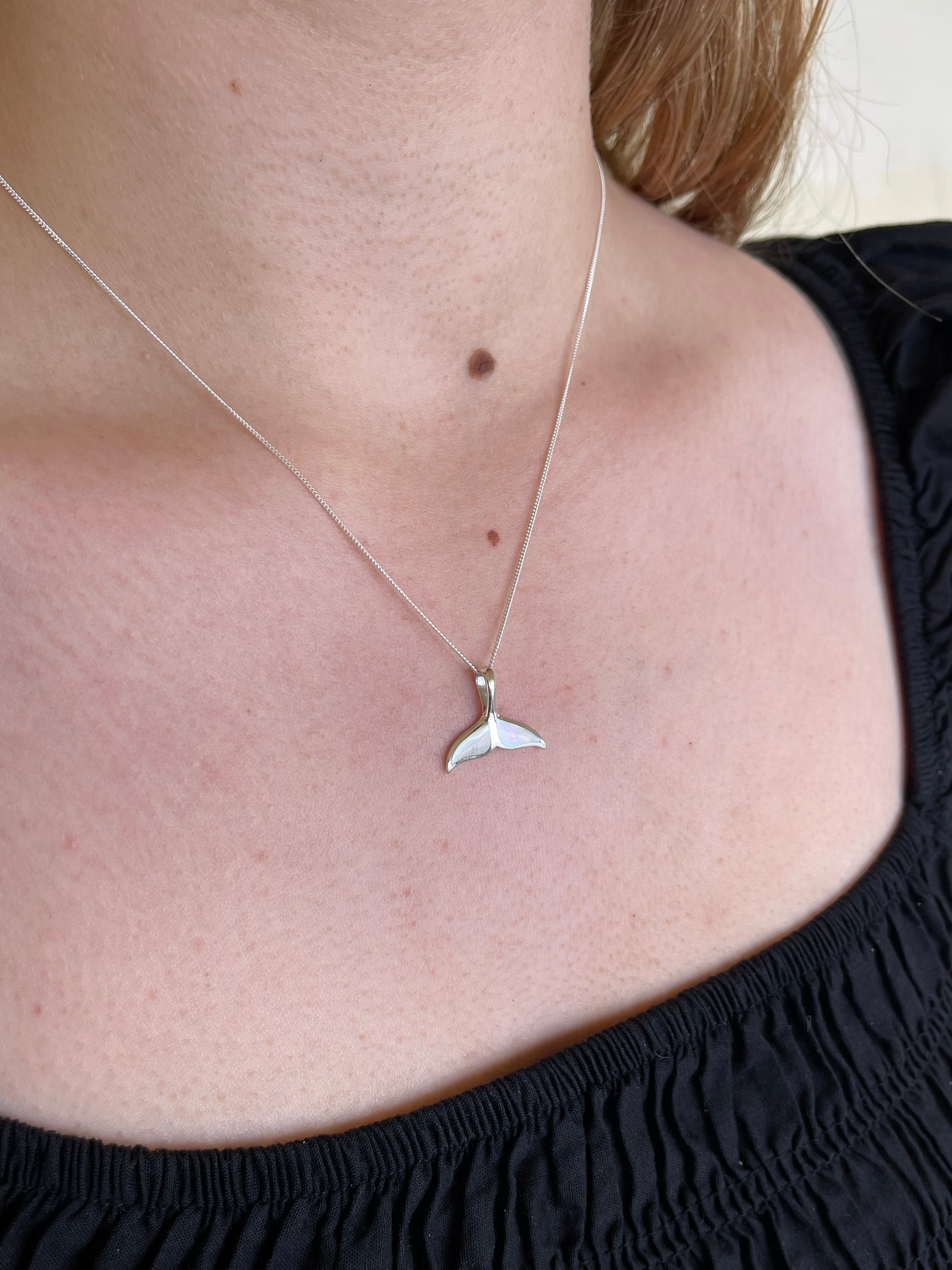 925 Sterling Silver Mother Of Pearl shell inlay pendant necklace