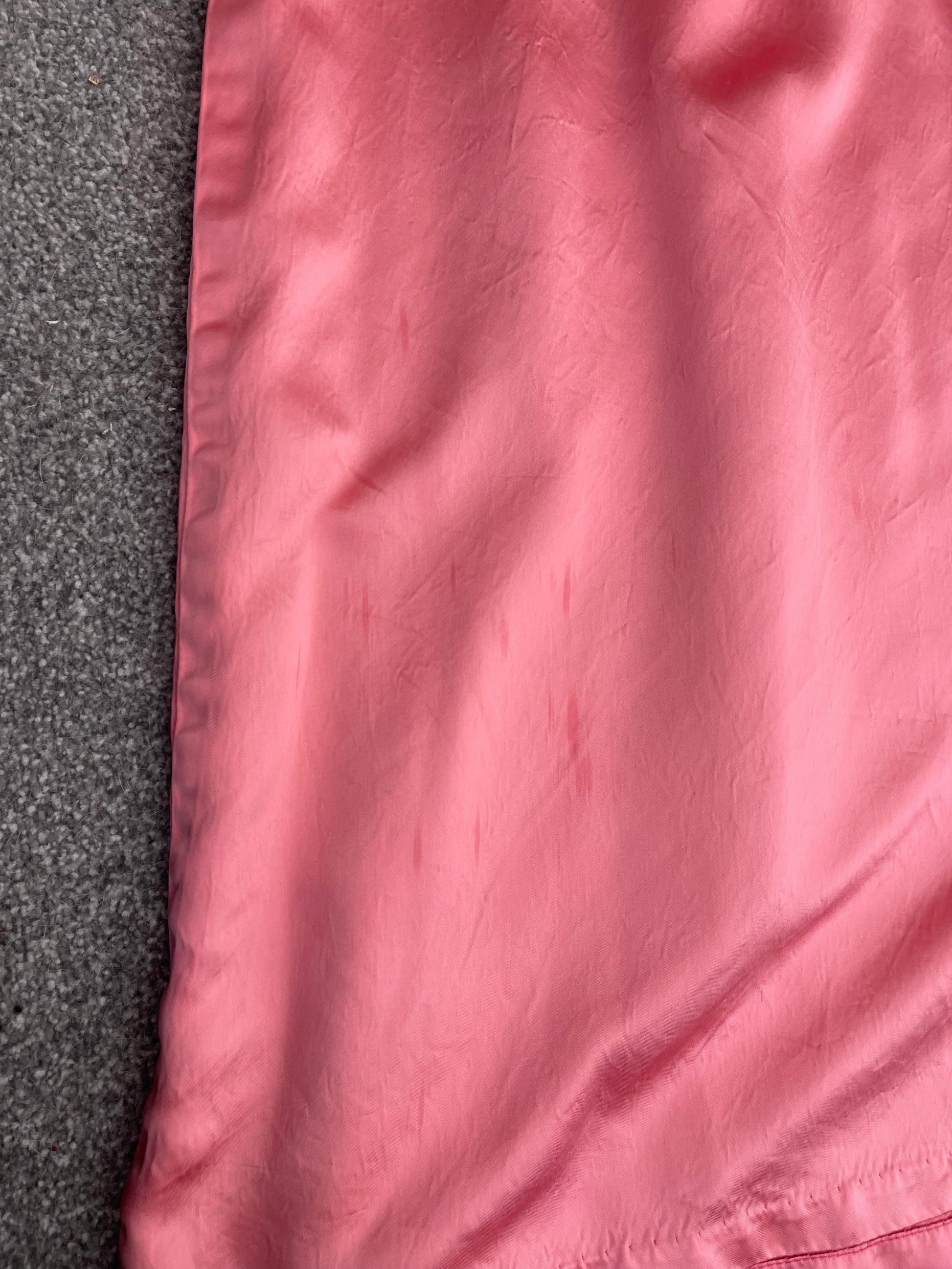 Care: As this is made from delicate satin a cool hand wash is recommended, dry clean, steam clean also. Please take these guidelines as suggestions, no responsibility taken for cleaning/care errors.