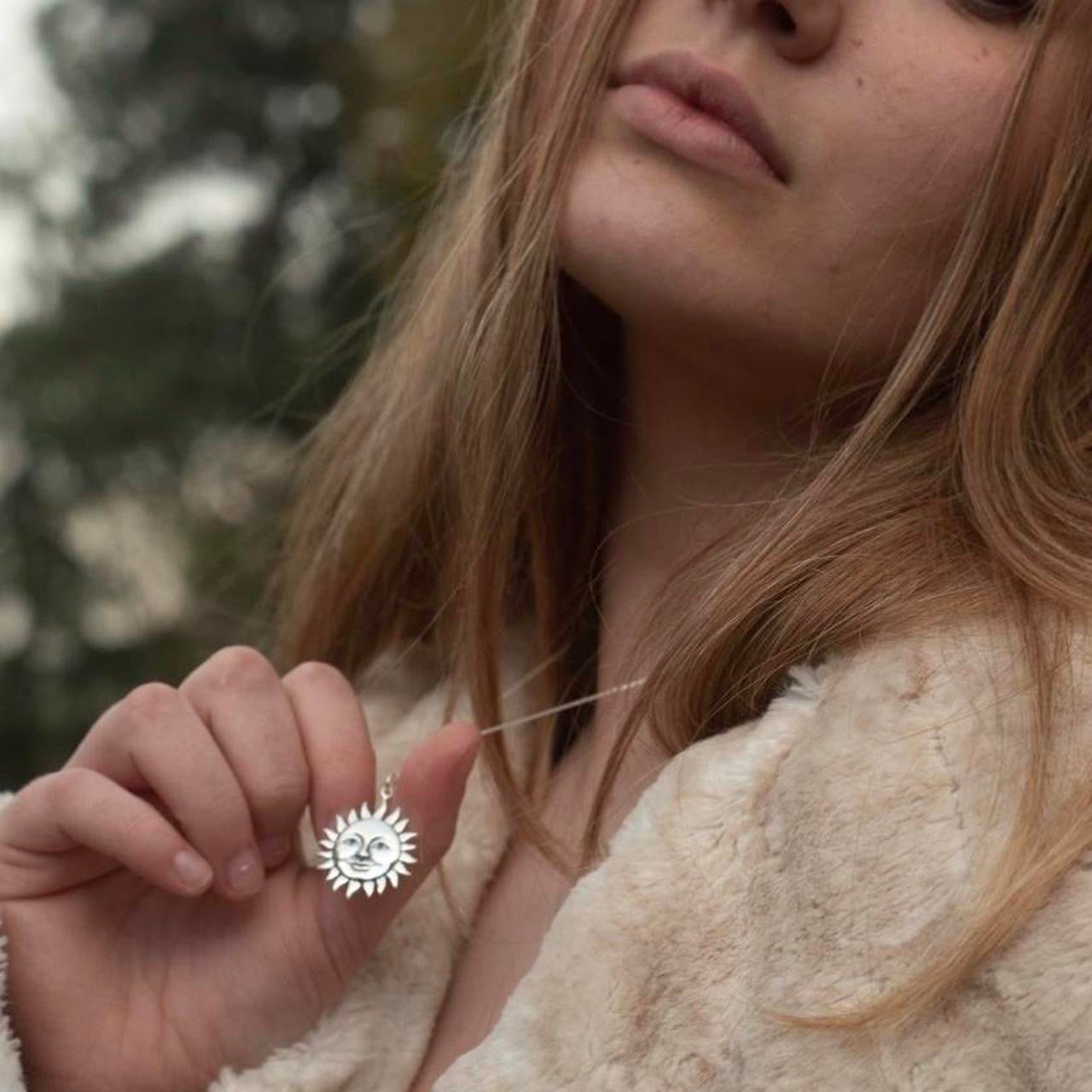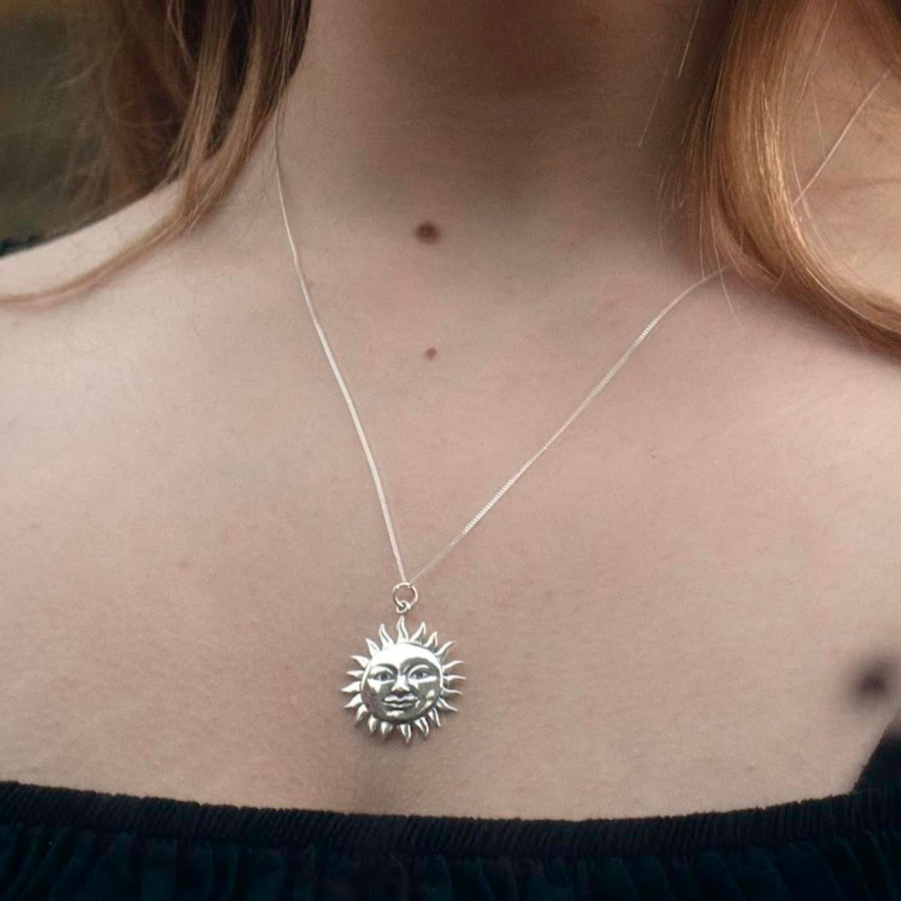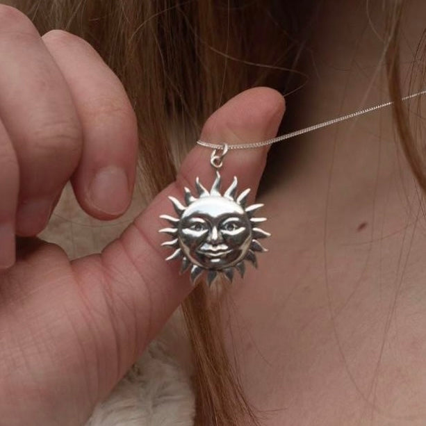 925 solid sterling silver celestial sun face necklace