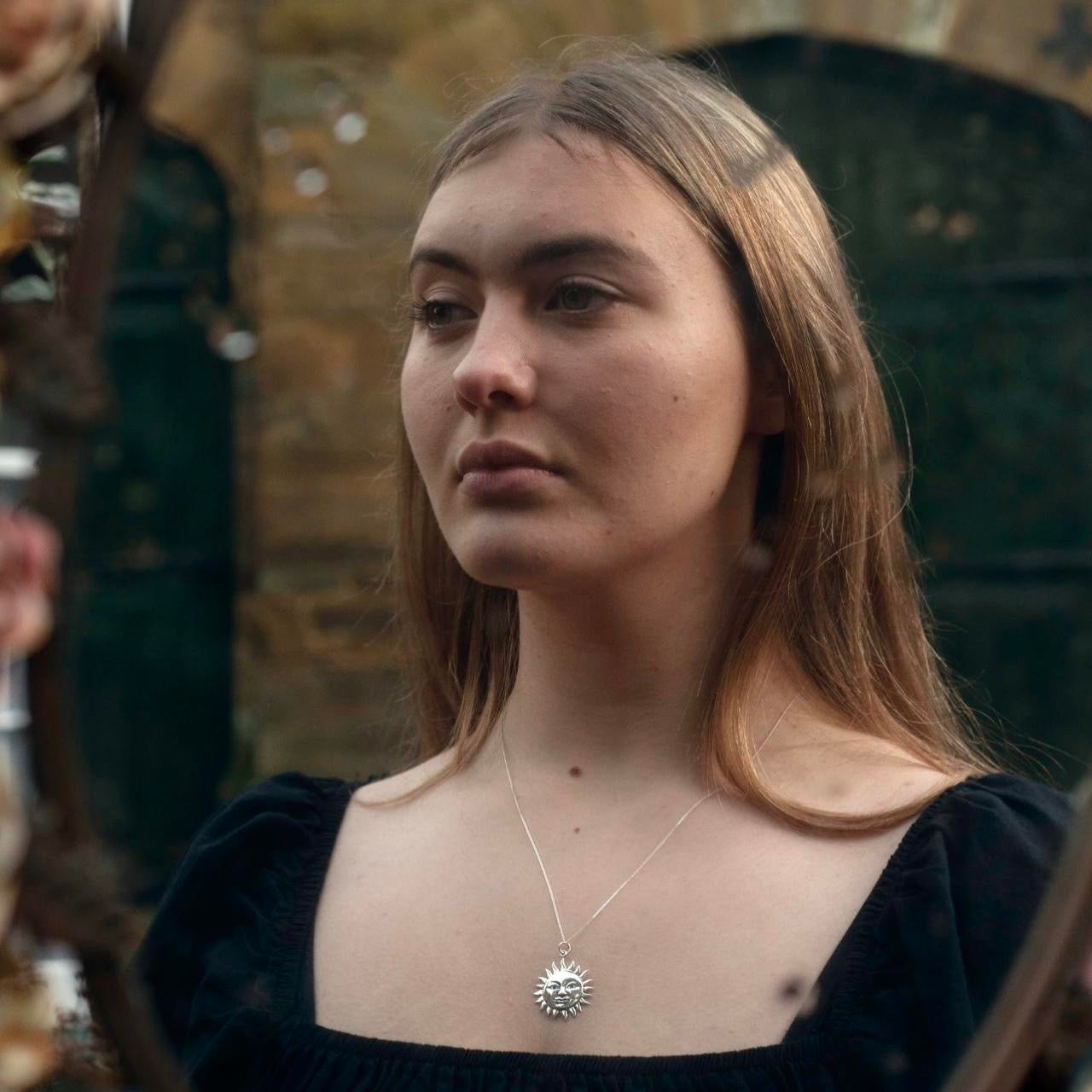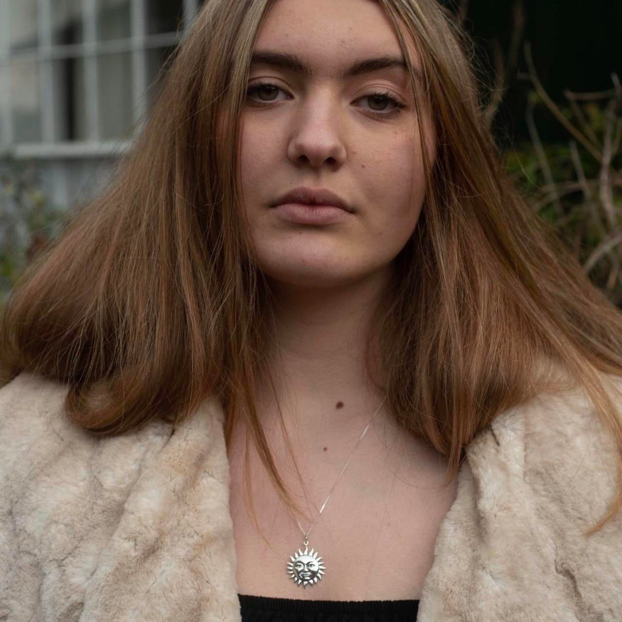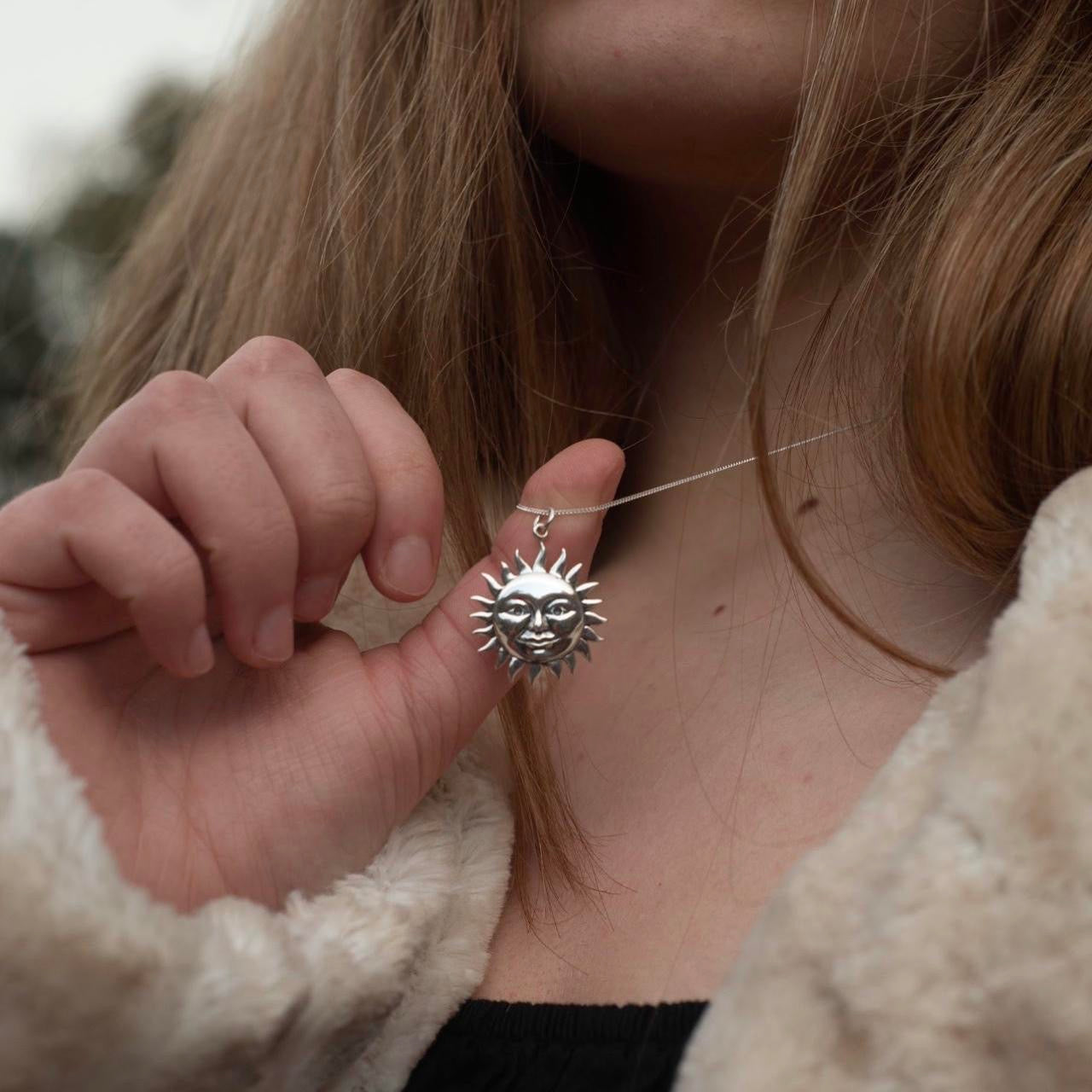 925 solid sterling silver celestial sun face necklace