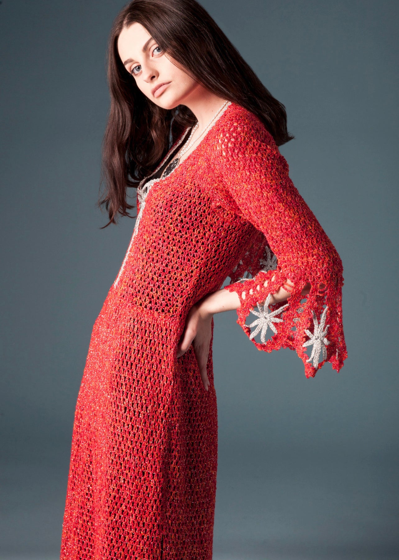 Lurex crochet maxi dress in clementine orange with bust and sleeve detail