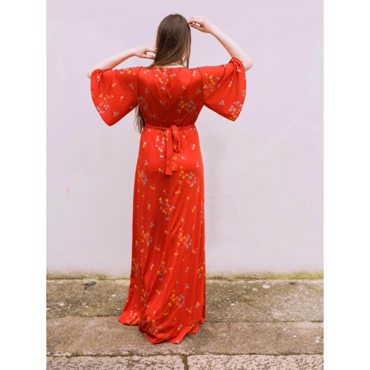 Sweep through tall grass in the mid day sun in this floating vintage maxi dress, original one of a kind 1970s piece. Design with Angel sleeves and waist tie.