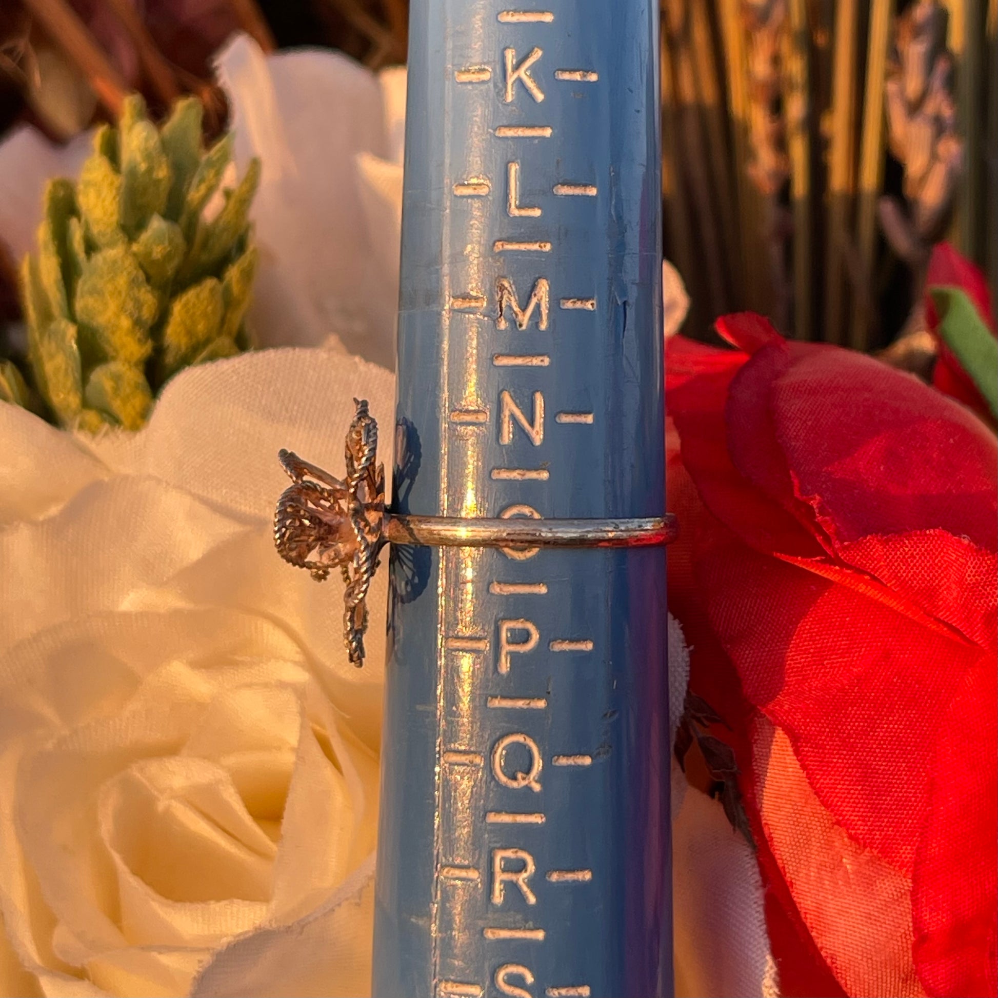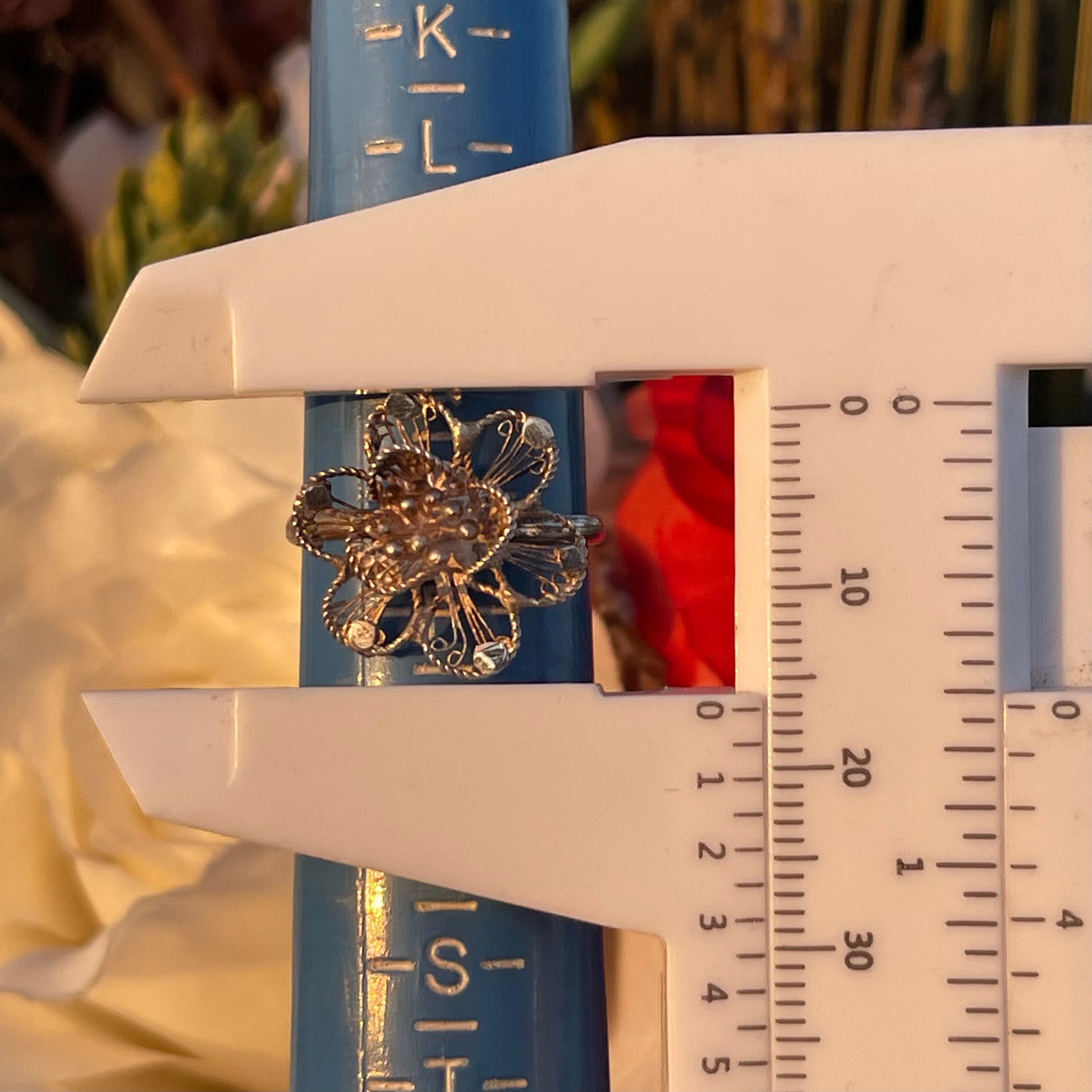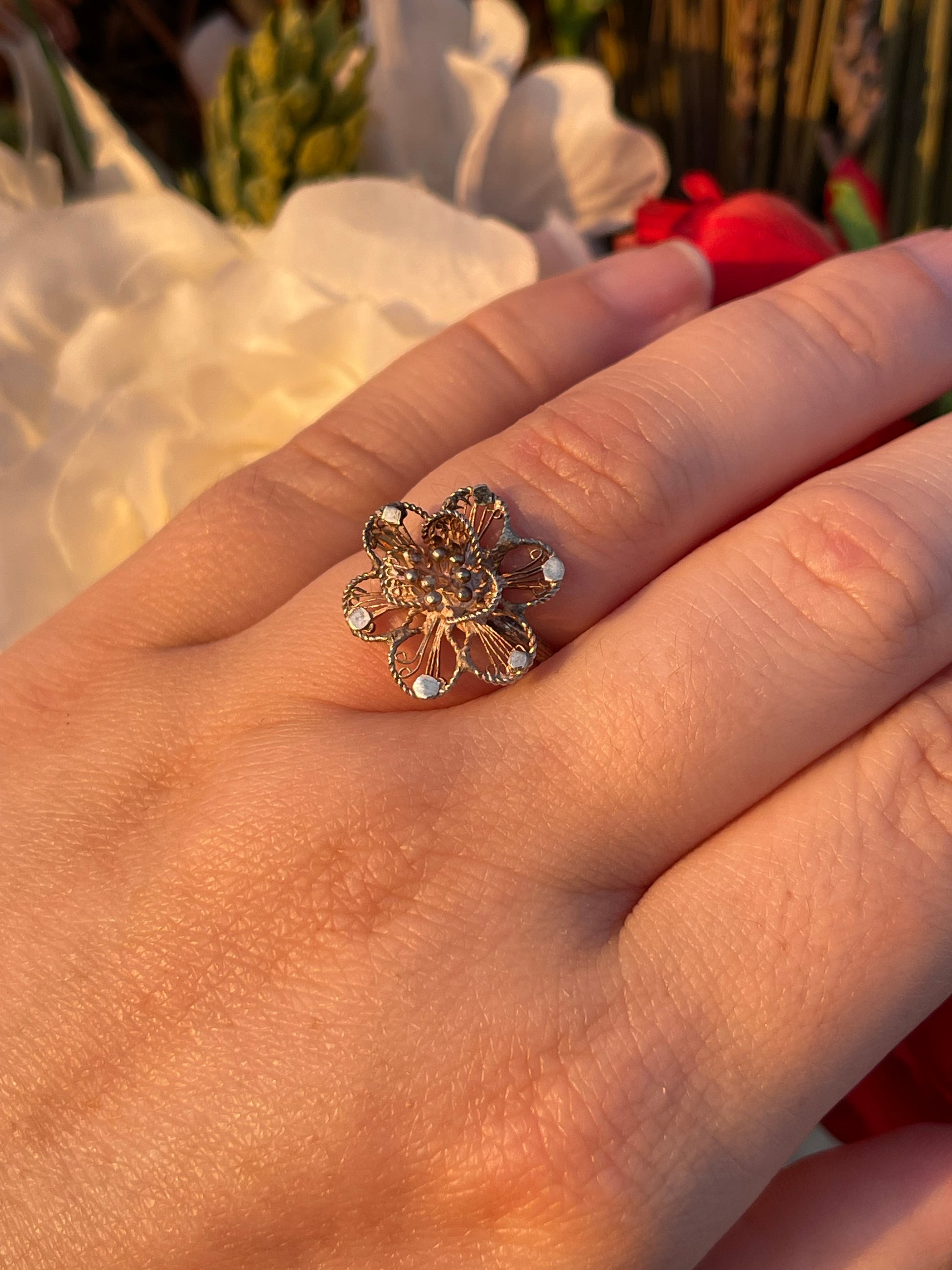 Beautiful old dainty silver figree flower ring in the shape of a daffodil