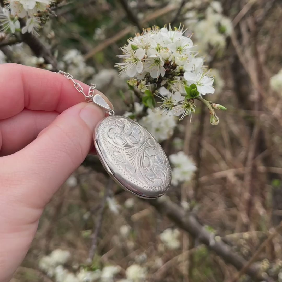 Beautiful large filigree swirl locket on a substantial anchor chain, dated 1983, in glossy sterling silver.