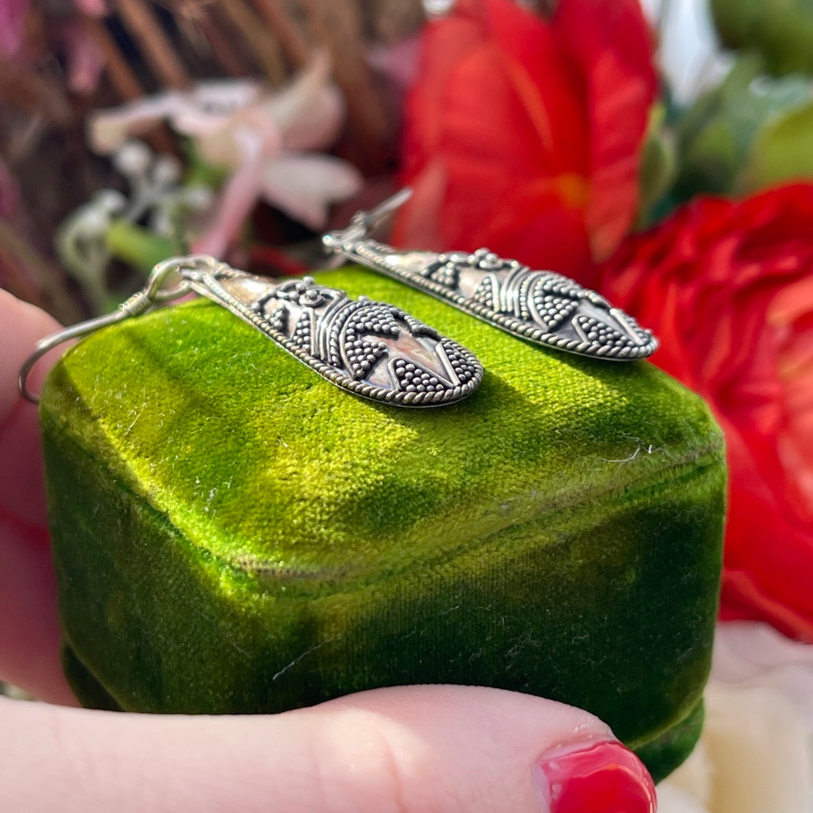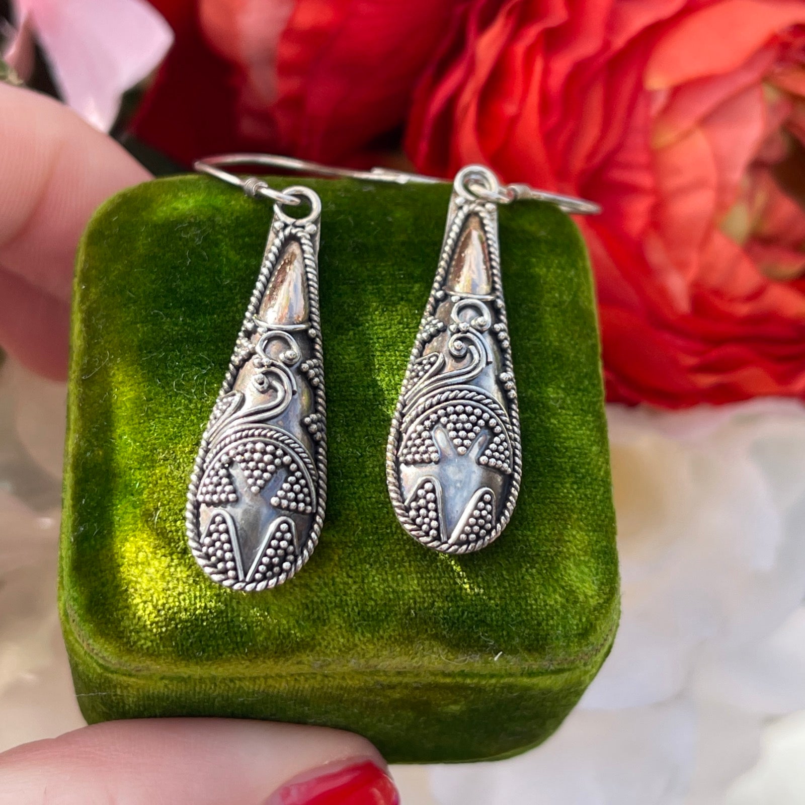 Vintage Sterling Silver Balinese Filigree Teardrop earrings
