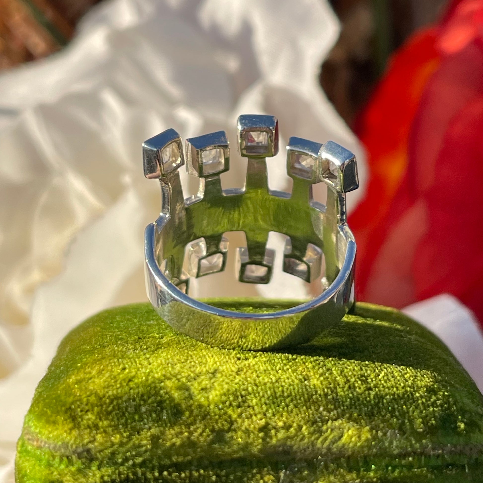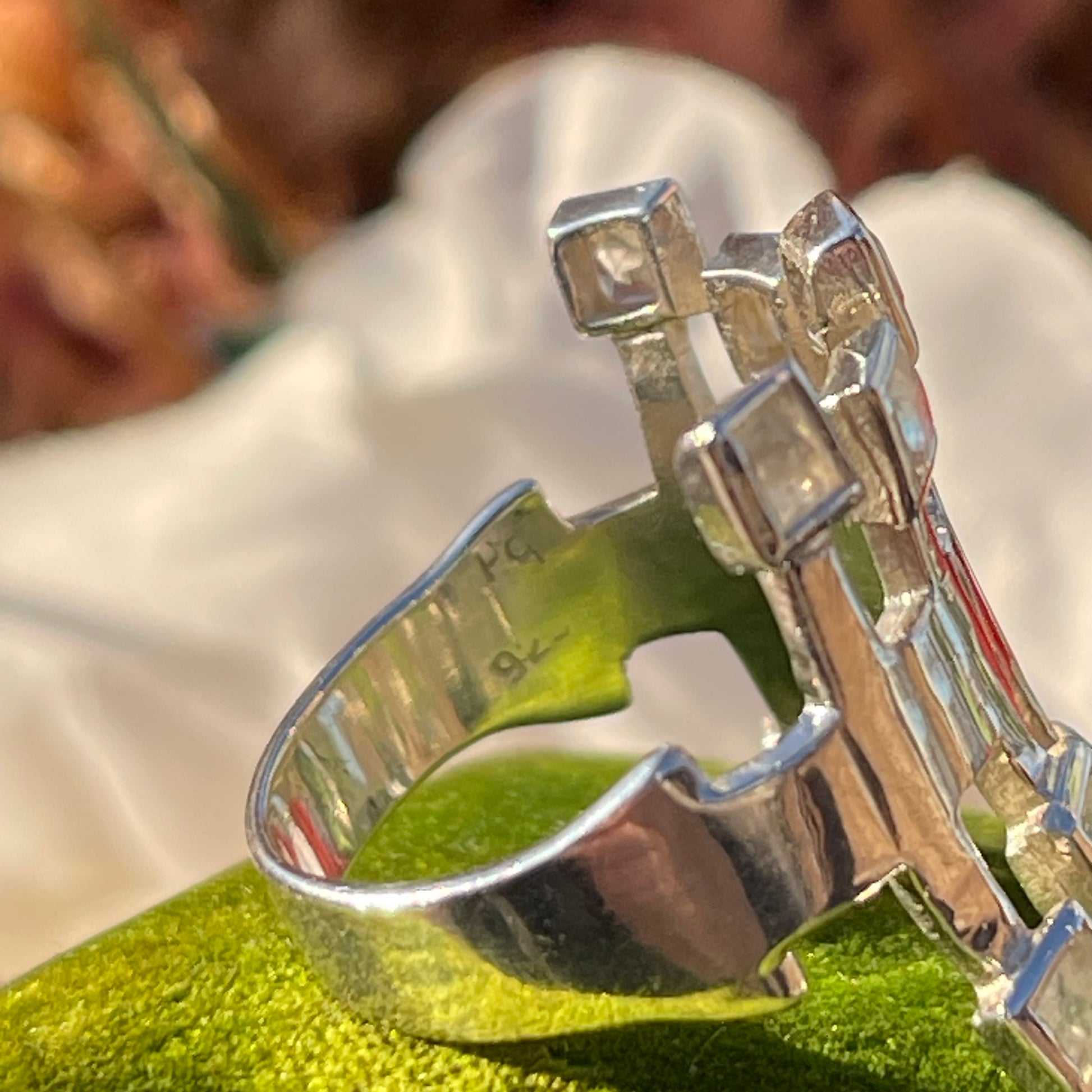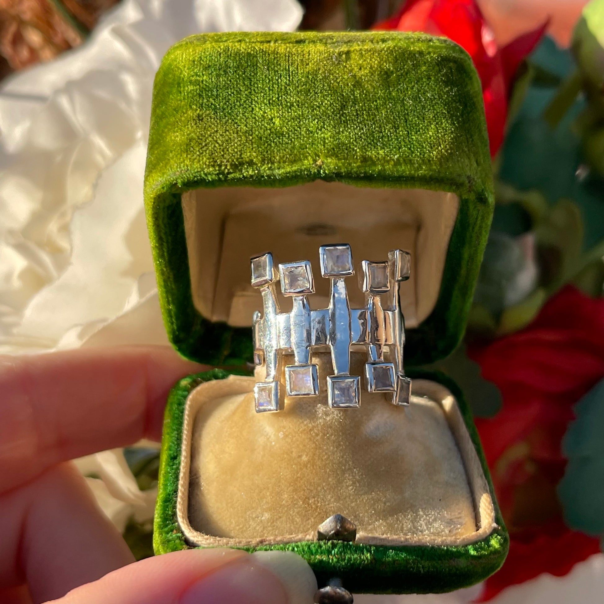 Vintage Sterling Silver Moonstone Square Modernist Statement Ring P