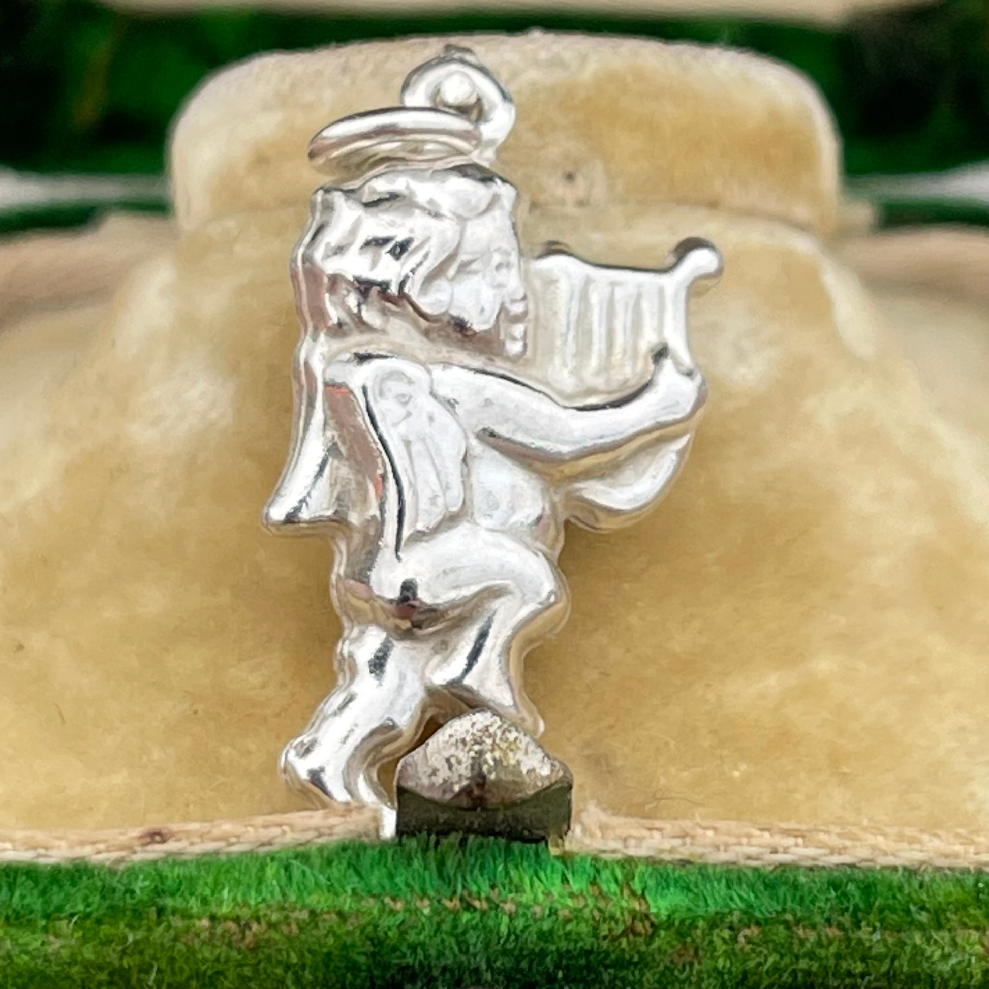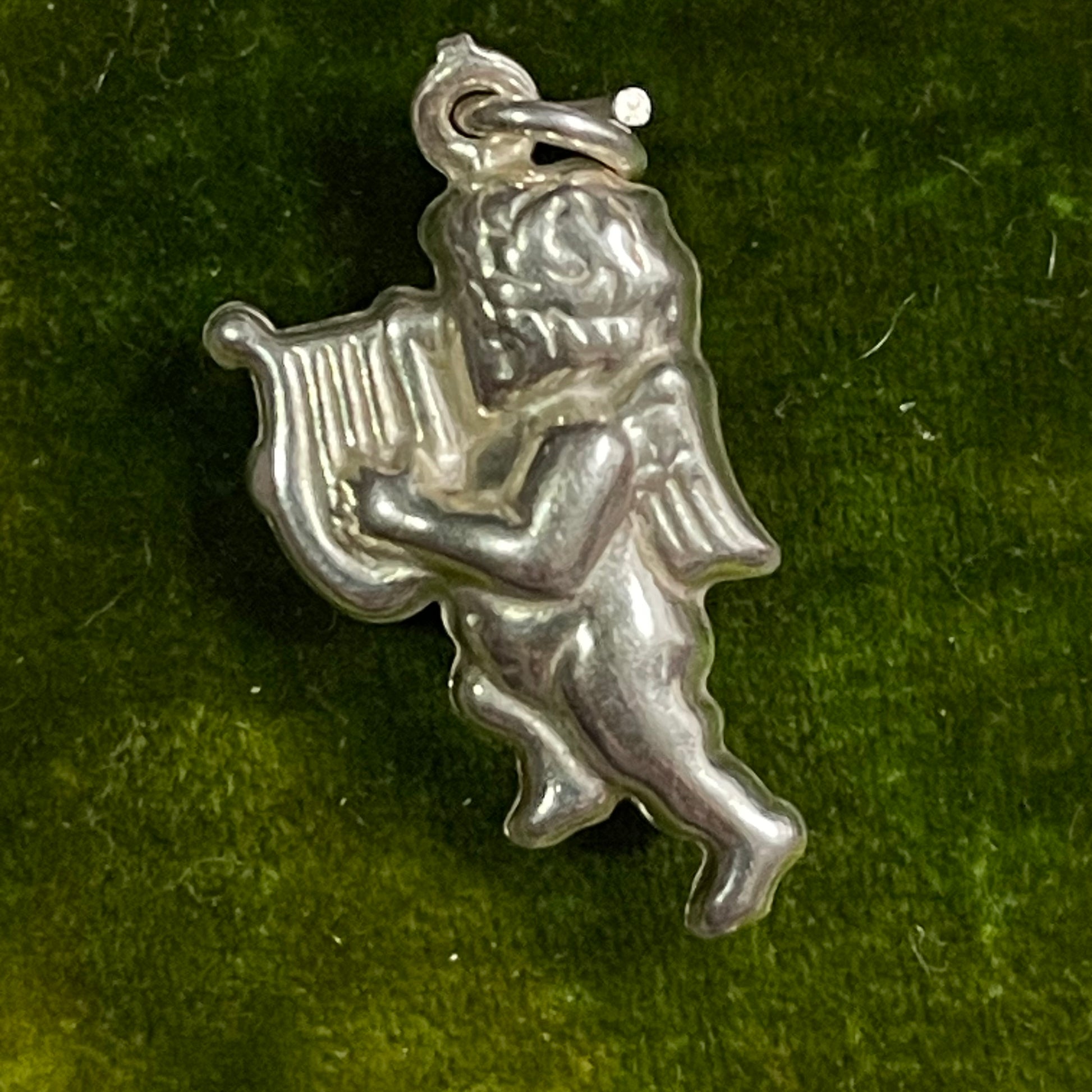 A vintage sterling silver dancing cherub charm. Can be worn as a pendant or affixed to a bracelet as a charm.