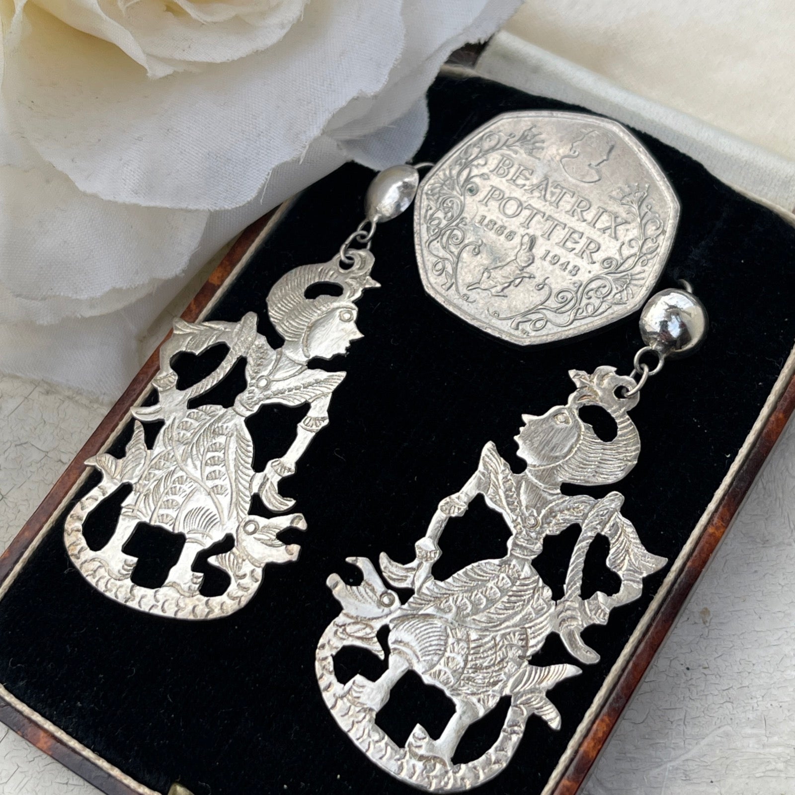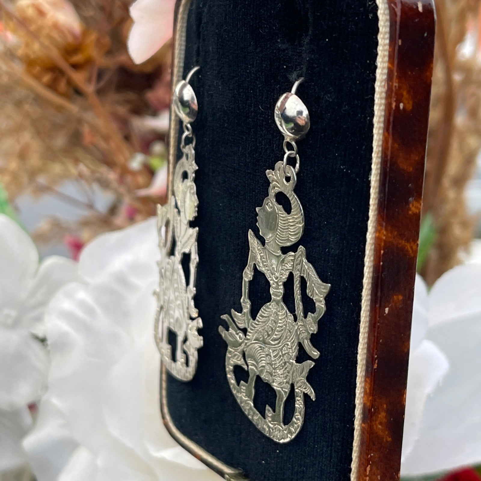 Vintage Sterling Silver Siam Dancer Dropper Earrings