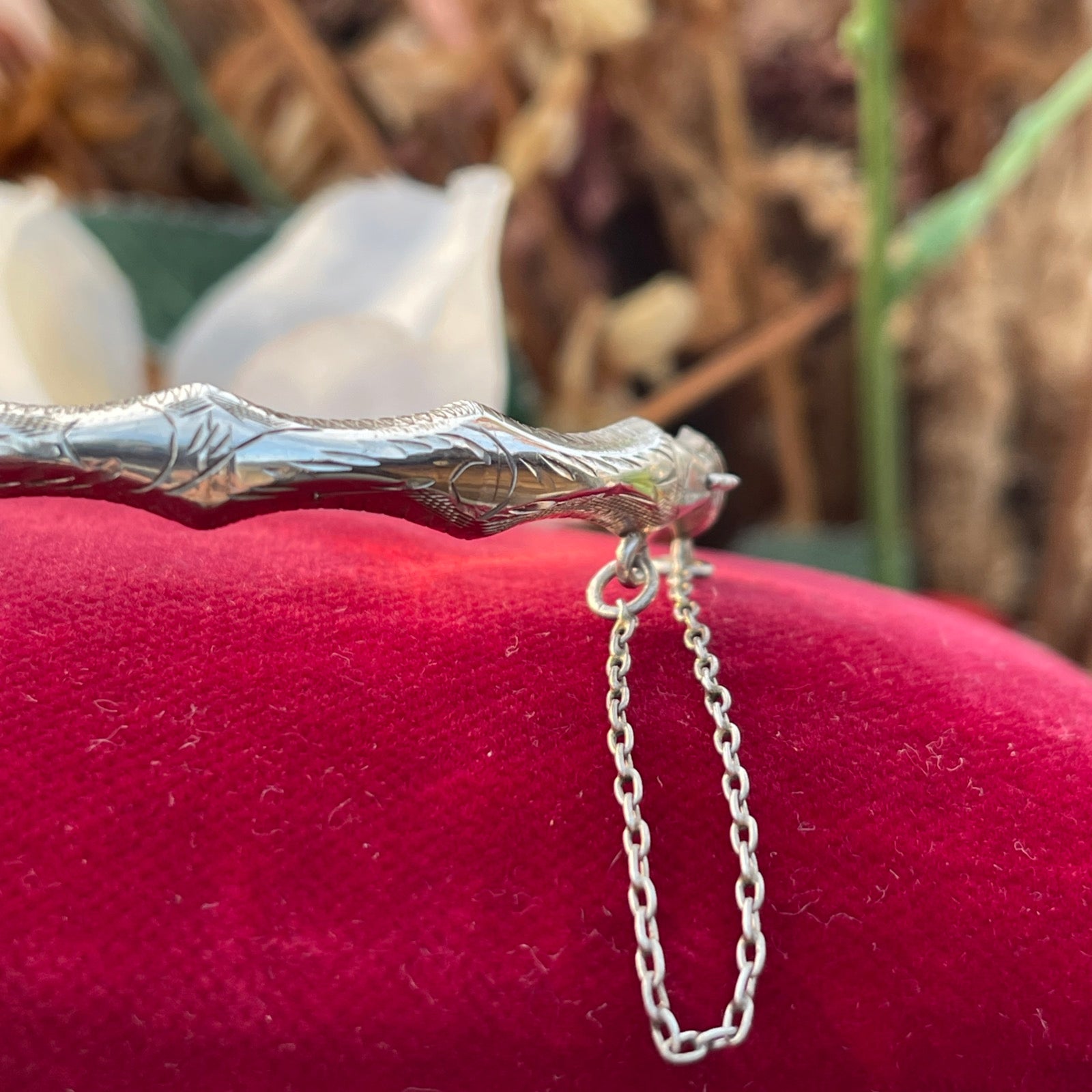 Vintage Sterling Silver Slim Etched Bamboo Bangle Bracelet