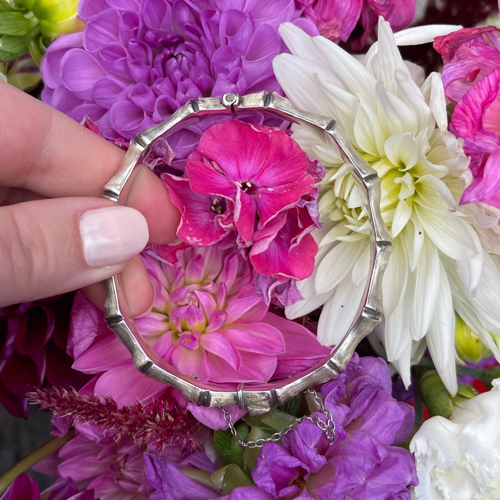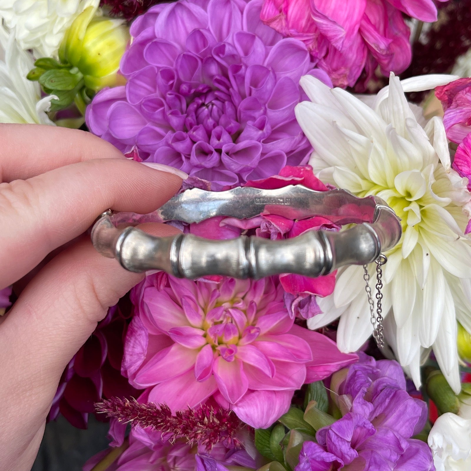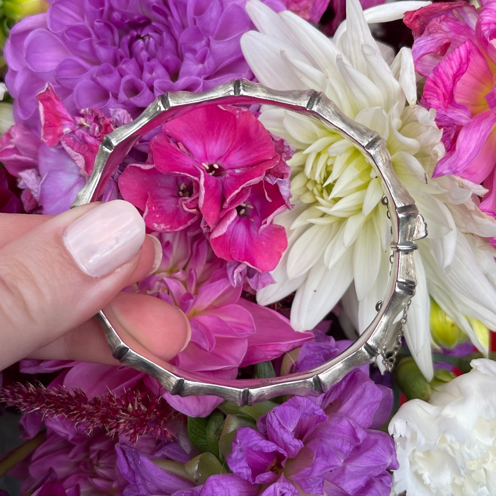 Vintage Sterling Silver Textured Bamboo Bangle Bracelet